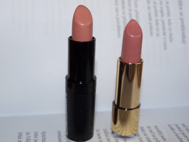 Dermacol je více do růžova, Rimmel zase do hněda. Dermacol je určitě krémovější a více hydratační, s výdrží to bude zhruba podobné.